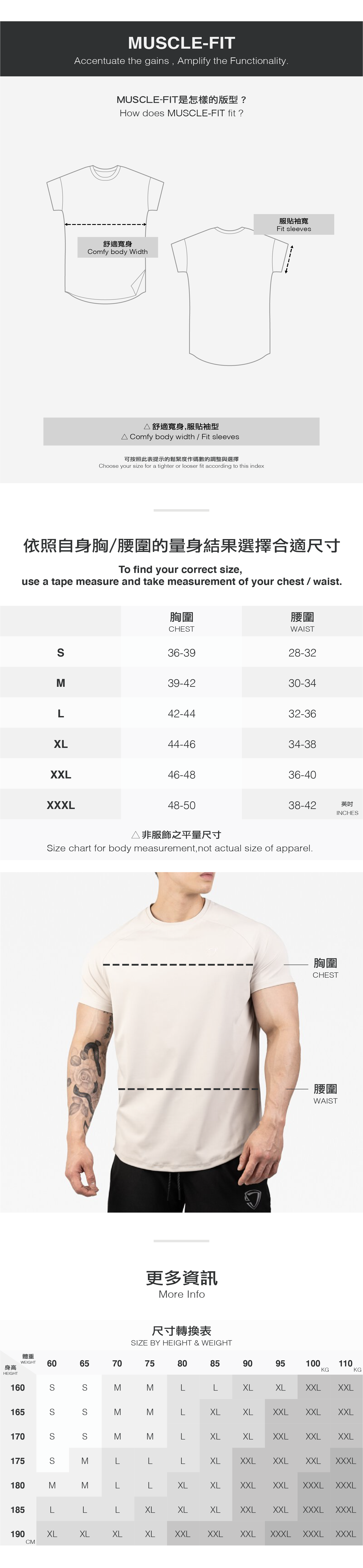 經典顯壯肌肉版型,凸顯寬肩、厚背,展現挺拔身形